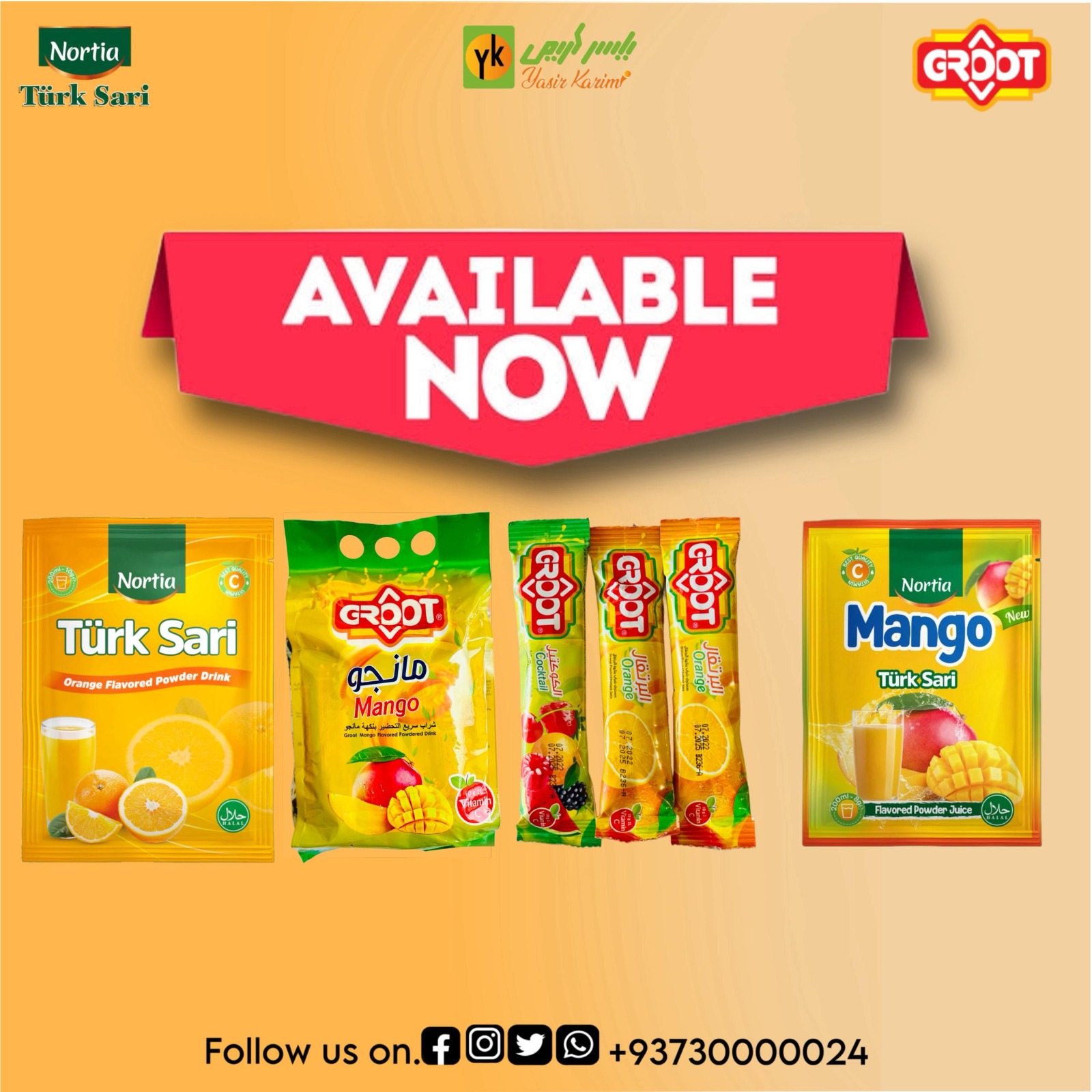 At Türk sari , we take pride in importing high-quality beverages that offer exceptional taste and refreshment. Our diverse product range includes Türk Sari Orange Flavored, Mango Türk Sari, Groot Orange Flavored, Groot Mango Flavored, Groot Cocktail, Nortia Coffee, and Groot Coffee 3 in 1. We are committed to bringing rich flavors and premium-quality drinks to our customers, ensuring satisfaction with every sip. Whether you prefer the refreshing zest of citrus, the tropical sweetness of mango, or the bold aroma of coffee, Türk sari delivers excellence. Our mission is to provide superior products while maintaining high standards of quality and reliability, making us a trusted name in the beverage industry.